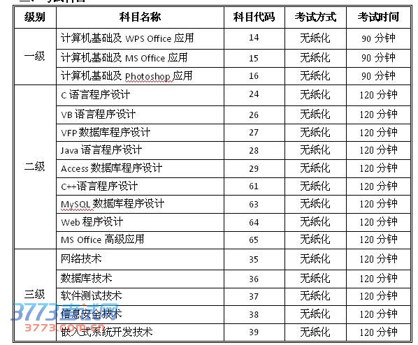 武汉生物工程学院2014上半年全国计算机二级考试科目
