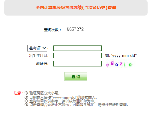 全国计算机等级考试成绩(当次及历史)查询