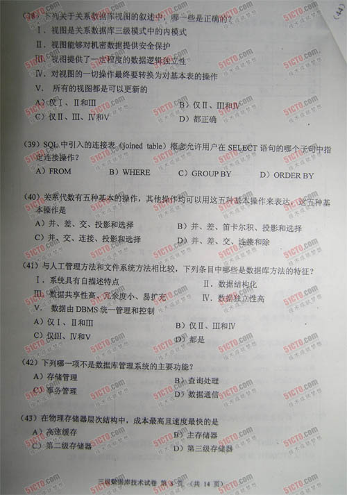2009年3月计算机等级考试试题及答案三级数据库笔试