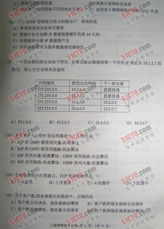2009年3月计算机等级考试三级网络笔试试题答案