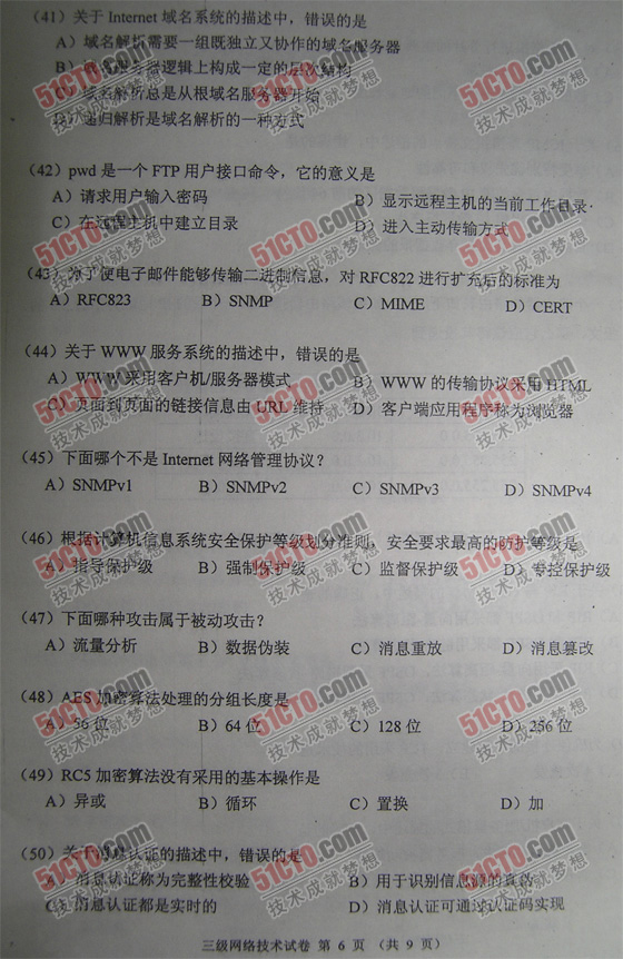 2009年3月计算机等级考试三级试题-网络技术笔试