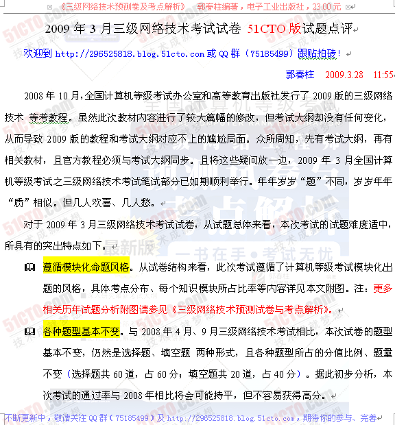 2009年3月计算机等级考试三级试题-网络技术笔试