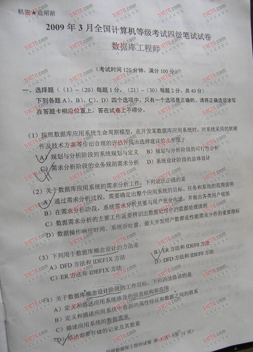 2009年上半年计算机等级考试四级数据库工程师试题答案