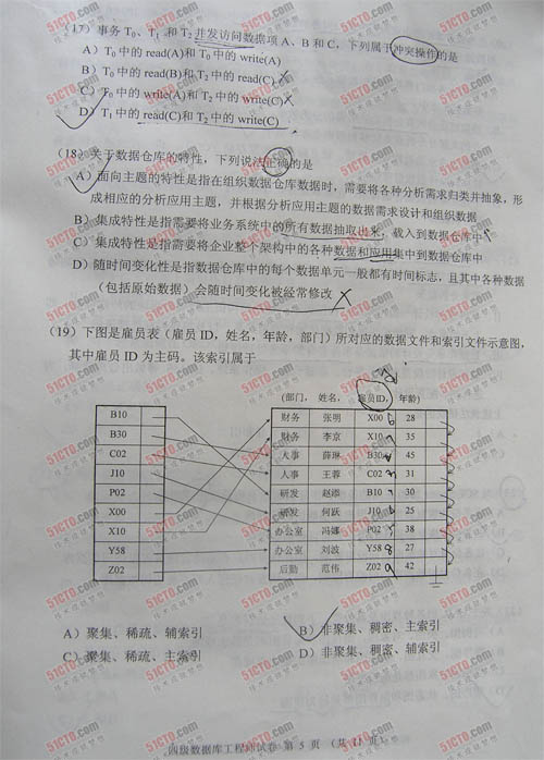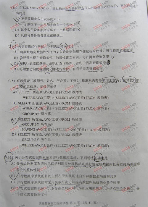 2009年上半年计算机等级考试四级数据库工程师试题答案