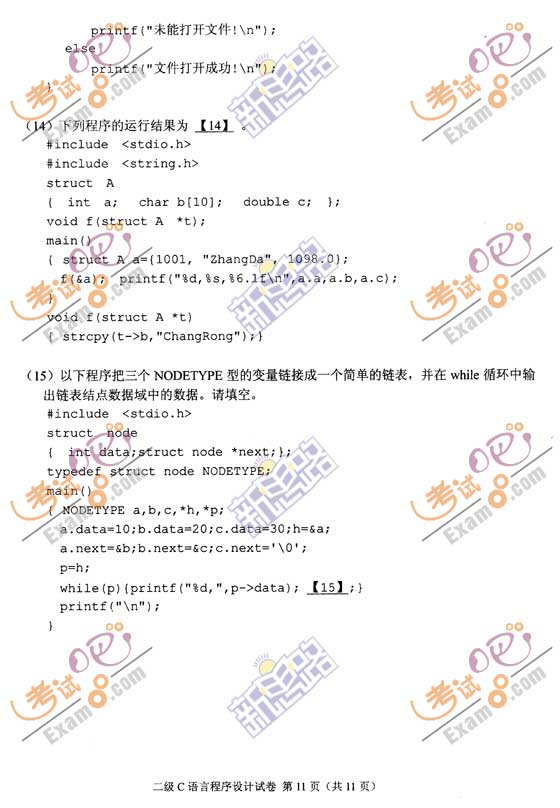2009年3月计算机等级考试试题及答案在考后陆续发布中,请随时关注刷新本站,