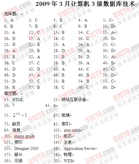 ][组图]2009年3月计算机等级考试三级数据库笔试试题