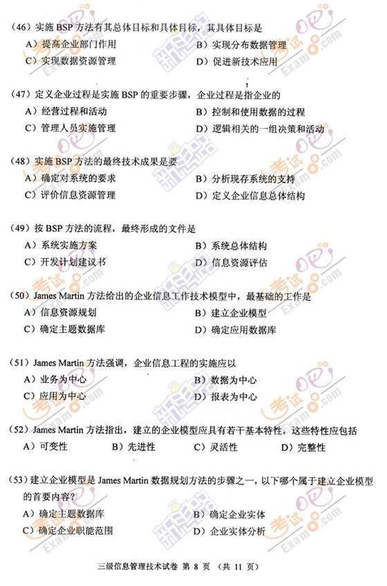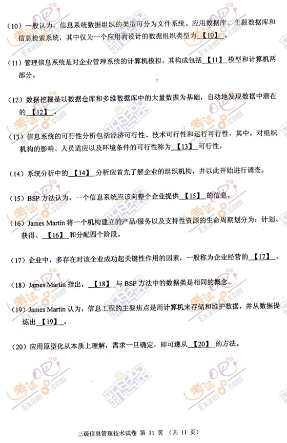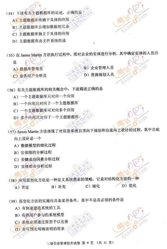 2009年3月计算机等级三级信息管理笔试试题