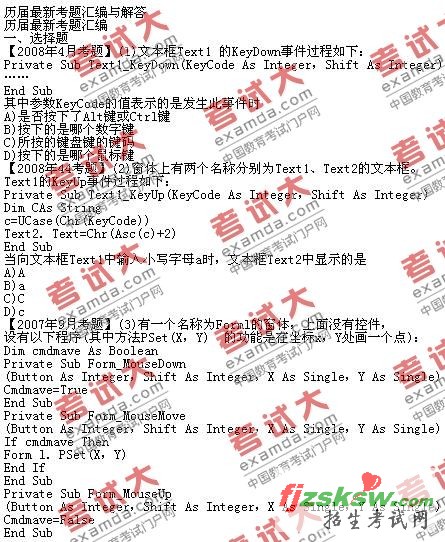 VB键盘与鼠标事件过程历届最新考题汇编与解答