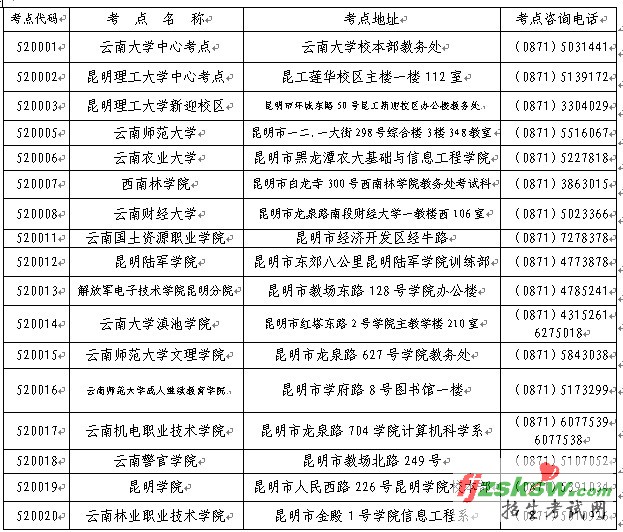云南省2010年上半年第31次全国计算机等级考试考点设置