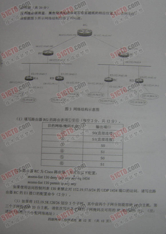 2012年3月全国计算机等级考试三级网络技
