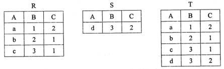 其中关系T由关系R和S通过某种操作得到,该操作为