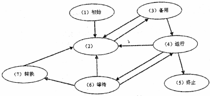 (15)在Windows XP中,线程的状态可以分为7种,它们分别为初始、【15】 、备用、运行、终止、等待和转换,如下图所示。