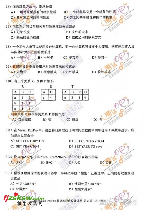 2010年全国计算机等级考试二级VF真题及答案