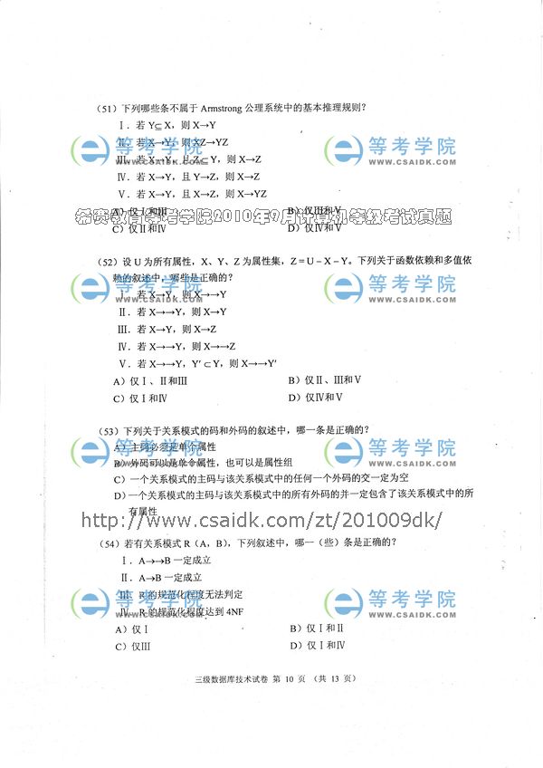 2010年9月计算机等级考试三级笔试试卷_数据库技术
