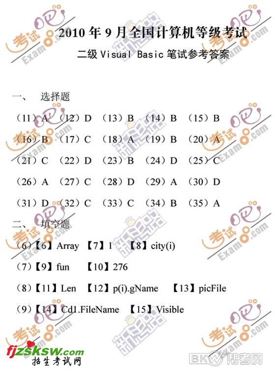 2010年9月计算机二级考试VB笔试答案