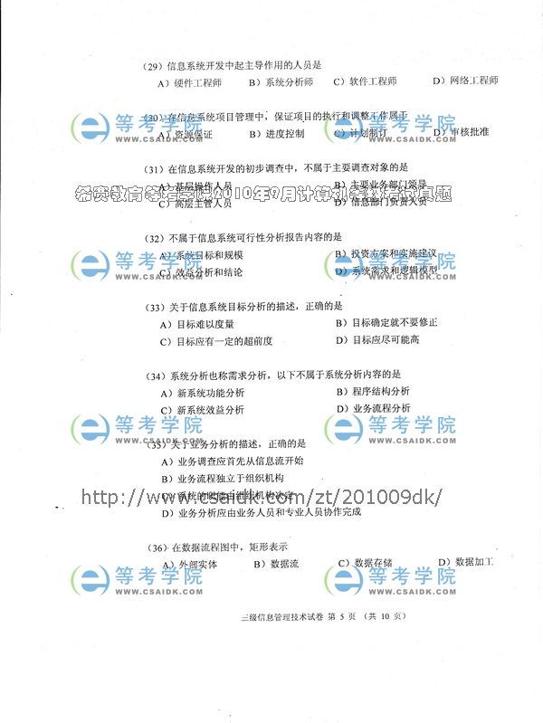 2010年9月计算机等级考试三级笔试试卷_信息管理技术