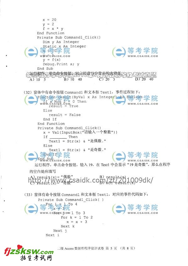 2010年9月计算机等级考试二级Access真题