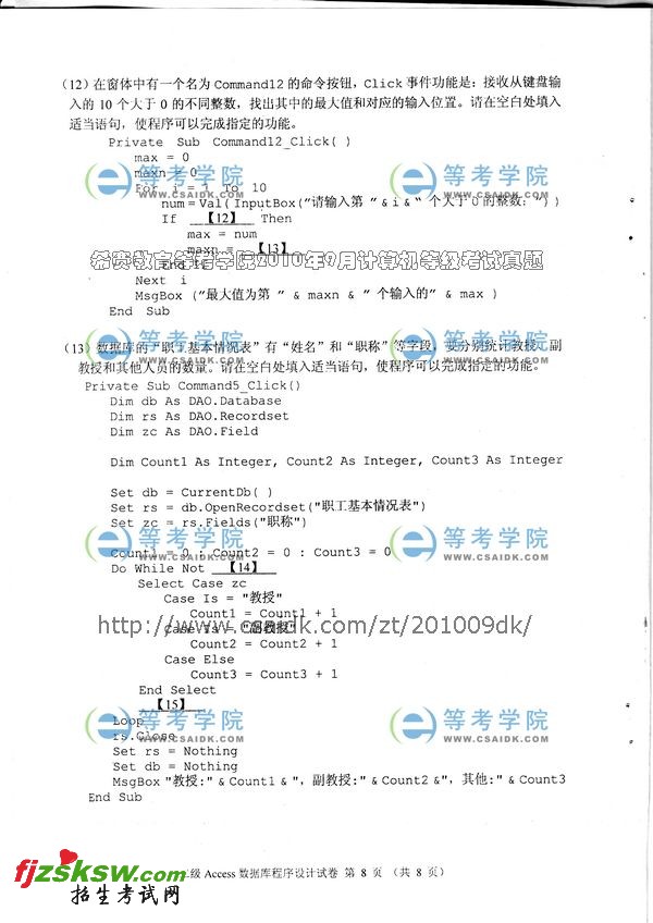 2010年9月计算机二级考试VB笔试答案