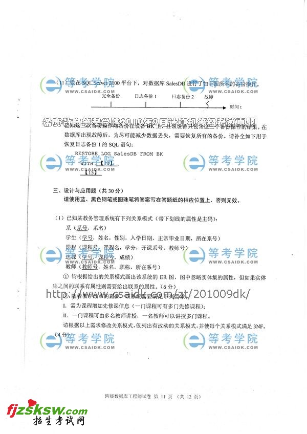 2010年9月计算机等级考试四级笔试试卷_数据库工程师