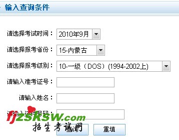 内蒙古2010年9月全国计算机等级考试成绩查询入口
