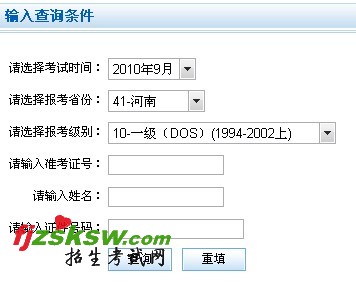 河南2010年9月计算机等级考试成绩查询入口