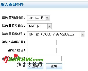 广东省2010年9月全国计算机等级考试成绩已经公布,考生可登陆教育部考试中心查询成绩。
