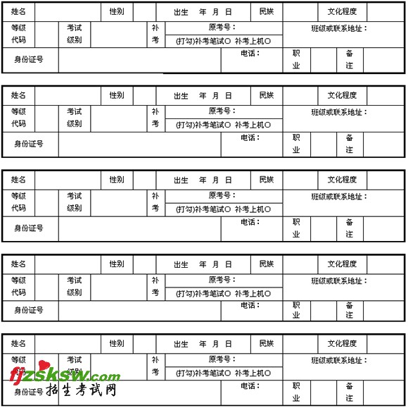 * 补考:补考的考生在该栏打“√”,一级没有补考。