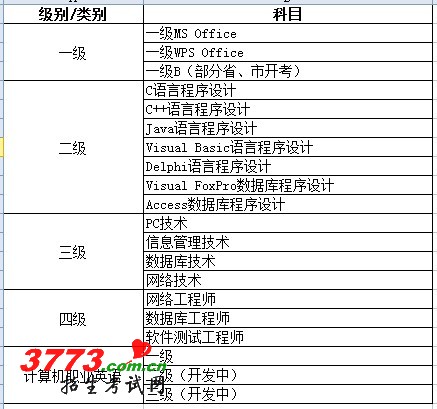 2012江苏计算机等级考试NCRE级别/科目设置如下: