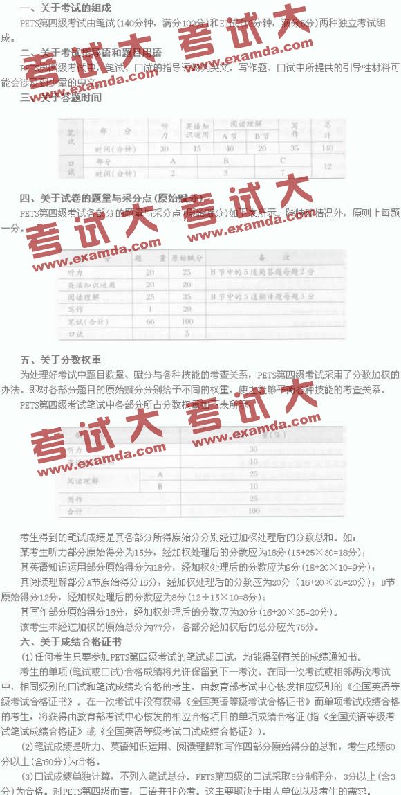 PETS四级考试结构简介