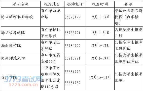 2016上半年海南英语等级考试考点地址电话报