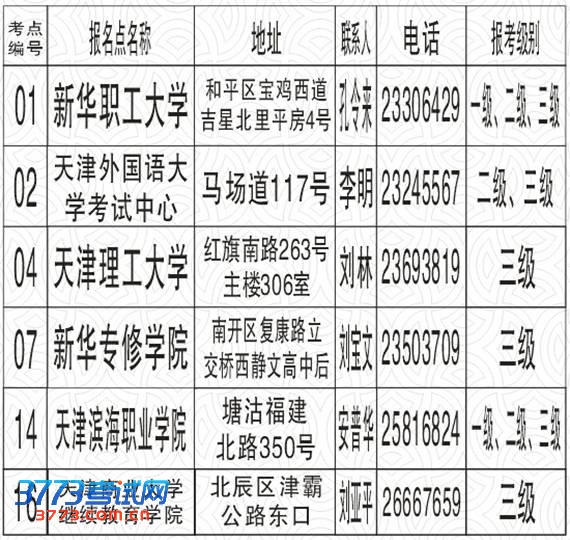 2013上半年天津英语等级考试PETS报考简章报名地点及电话