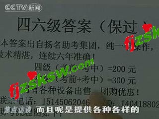 考生购买的答案通常分为考前答案和考中答案。考前答案是指在开考之前就卖给考生的一整套考试答案。根据很多考生的说法,考前答案的命中率一般不高,但也不排除全国范围内某些环节造成考卷外泄的高命中率。而考中答案,就是在开考后发给考生的答案。在四级考试进行中,记者再次接到来自不同卖答案者陆续发来的考中答案信息。