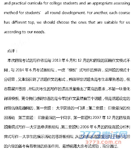 2014年12月英语四级考试作文范文:印象最深的课程1
