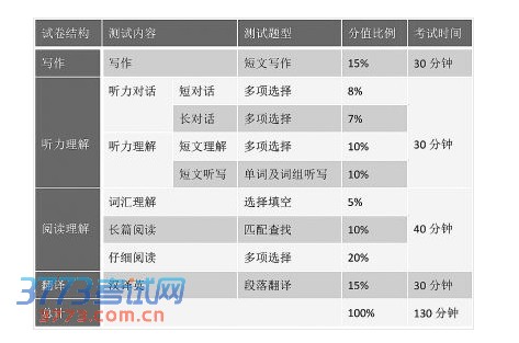 此外,将取消原有题型中的完形填空,考试时间则从原有的120分钟延长至130分钟,总分仍为710分。