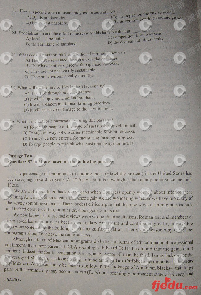 2010年6月大学英语六级试题及答案