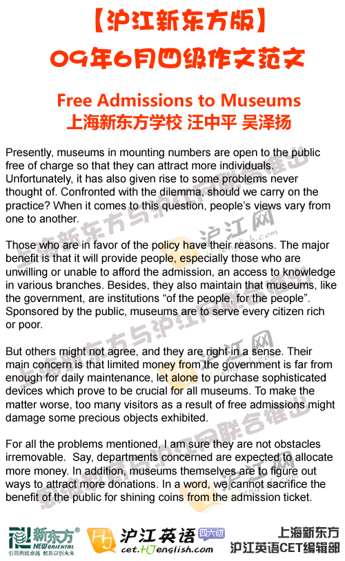 2009年6月大学英语四级作文范文(沪江新东方版)