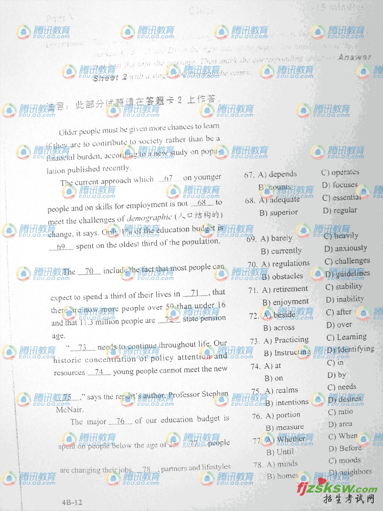 2009年12月CET英语四级B卷试题真题及答案