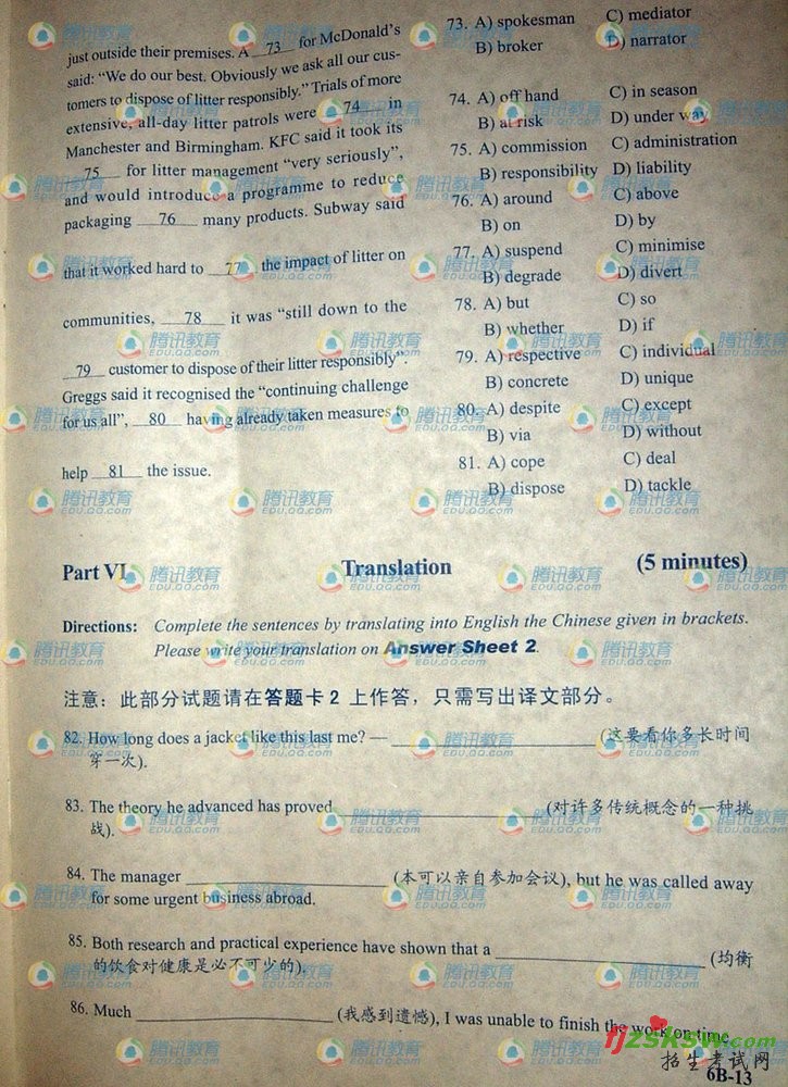 2009年12月CET英语六级B卷真题