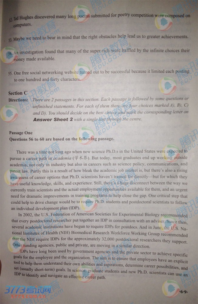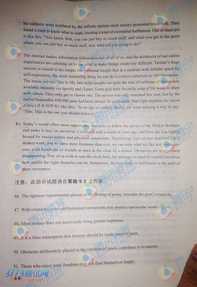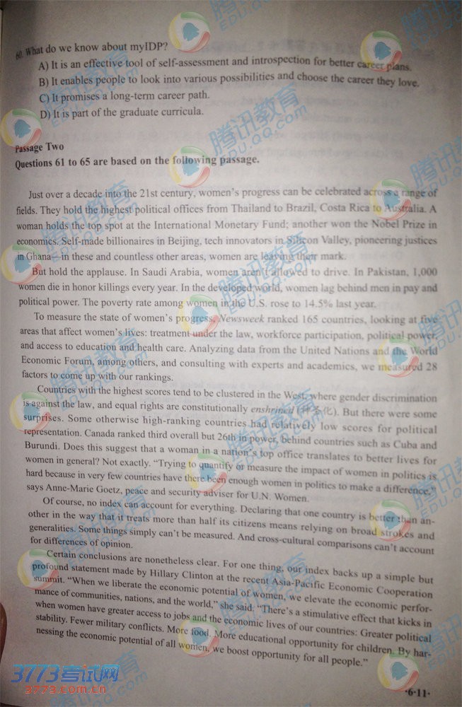 2013年12月英语六级完整版真题图片