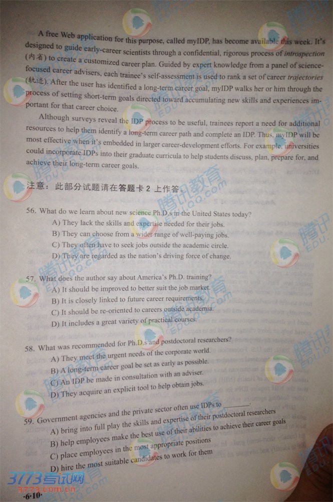 2010年6月大学英语六级试题及答案
