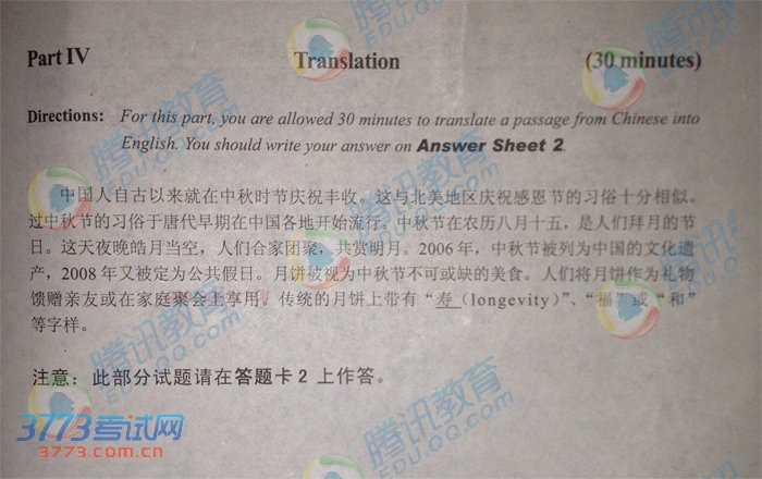 2014年6月英语六级翻译真题1及答案