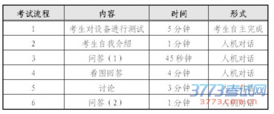 全国大学英语四、六级口语考试时间为每年5月和11月,考试采用计算机化考试,通过计算机,完成考生与模拟考官、考生与考生之间的互动。考试时间为15分钟,分为三个部分:Part1(第一部分),时间3分钟,题型为问答,考生自我介绍、回答问题;Part2(第二部分),时间10分钟,发言和讨论,考生准备1分钟后,根据所给提示作个人发言(1.5分钟),两位考生就指定的话题讨论(4.5分钟);Part3(第三部分),时间2分钟,问答形式,由考官进一步提问。