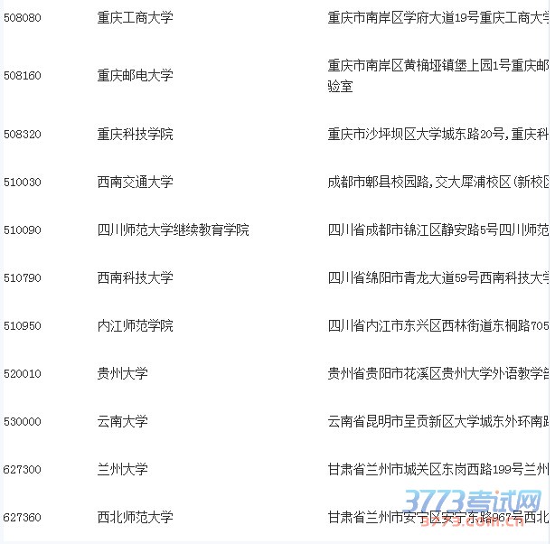 来自全国大学英语四、六级考试委员官方消息公布:2015年5月CET-SET考点地址如下: