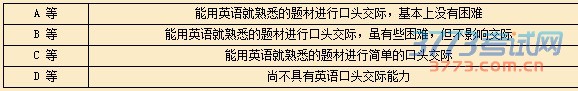 成绩分为A、B、C、D四个等级。成绩达到C等及以上的考生将获得注明口语和笔试两部分考试成绩的成绩报告单。