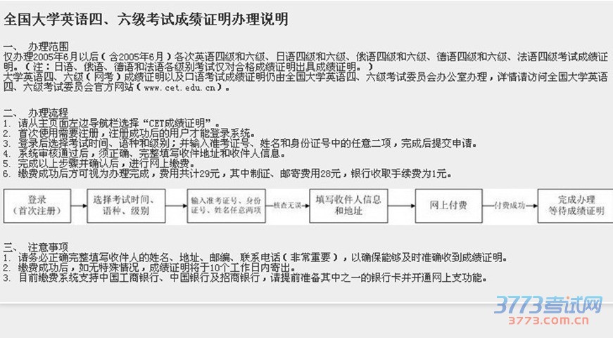 全国大学英语四六级考试成绩办理说明