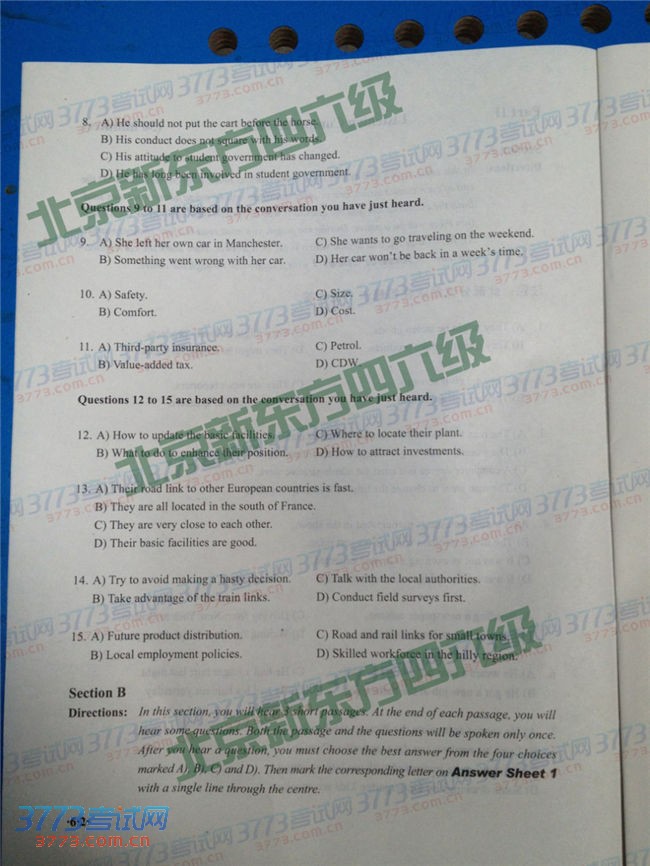 2014年6月英语六级试题卷完整图片版