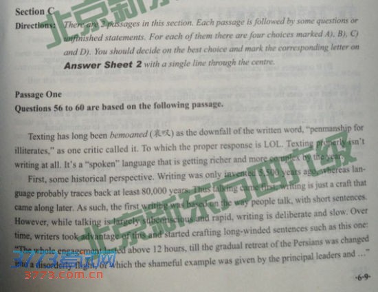 不同版本试题及参考答案,供考生参考,以下是2014年6月英语六级仔细阅读真题(新东方版)