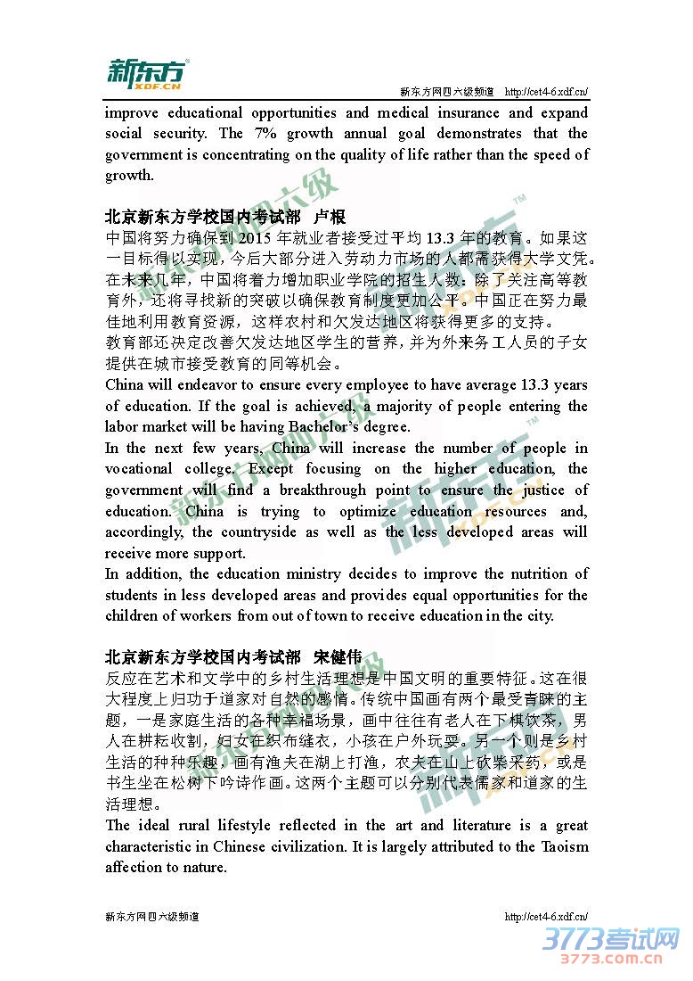 2014年12月英语六级翻译真题及答案(文学艺术1)