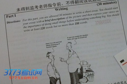 In this picture, we can tell that the son is talking to his father about his concern about the nuclear waste. His father told him that if he can empty the dustbin first, he can do anything. This is an easy but very important story, telling us that we have to focus on things around our daily life first, and then the things great enough in the world.