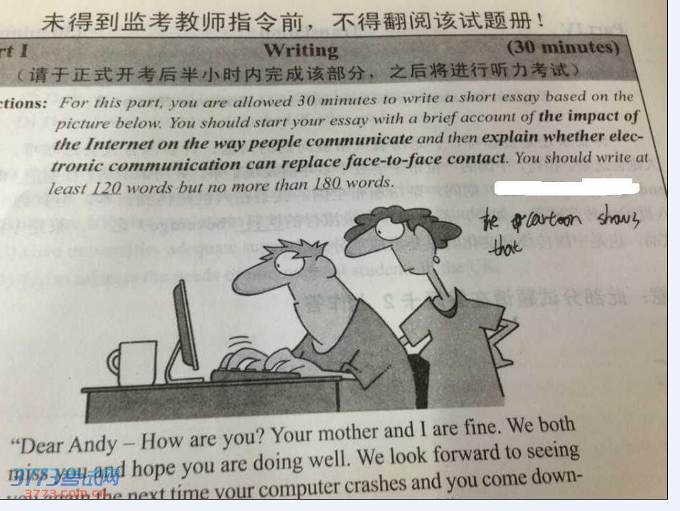 本次四级作文形式仍为漫画题,探讨因特网等现代信息技术对人们交流模式的影响。话题贴近日常生活,难度中等。题目要求简述网络的影响,并解释“电子通讯能否替代面对面的交流”,考生需要明确给出正面或反面的观点。